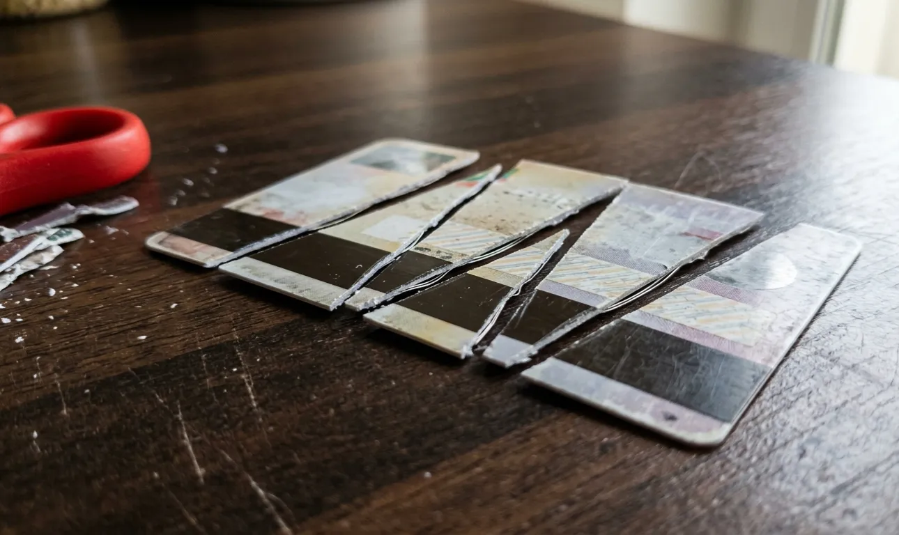 Nu trimiteți niciodată plasticul vechi întreg la coșul de gunoi, tăiați întotdeauna dreptunghiul strălucitor și linia magnetică întunecată pentru siguranța dvs. personală.