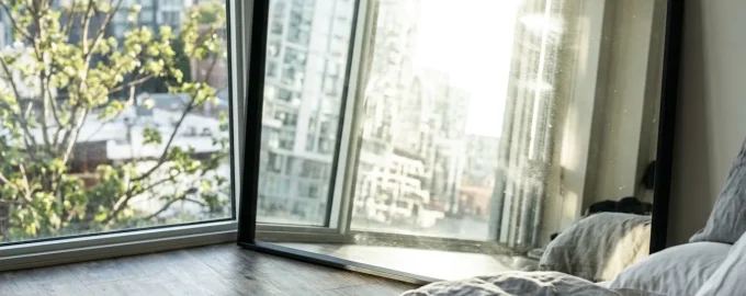 O fereastră de la podea la tavan extinde vizual spațiul, dar puneți o suprafață reflectorizantă mare vizavi de ea și camera se transformă într-un pasaj incomod.
