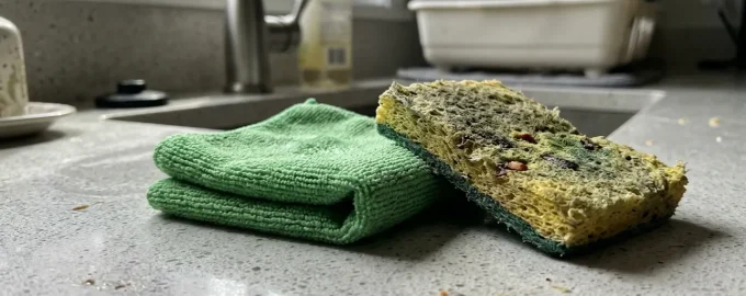 Mulți oameni sunt obișnuiți să șteargă firimiturile de pe masă cu același burete pe care tocmai l-au folosit pentru a spăla vasele, fără să se gândească